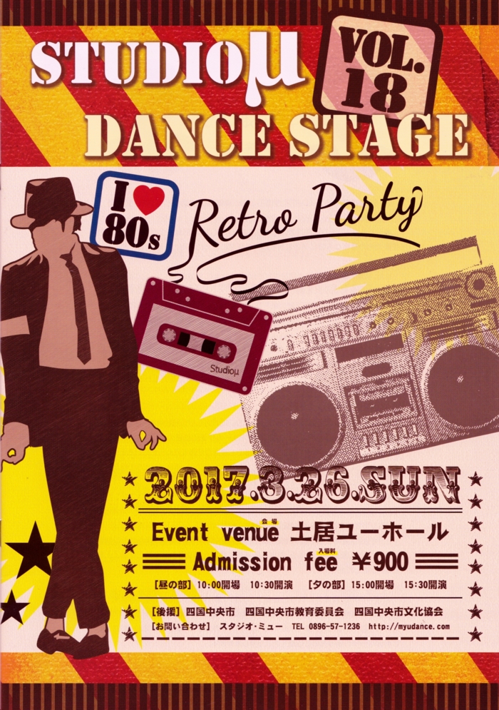 | 「LOVE PHANTOM」 オープニング 2.キッズBクラス 「Automatic /気分上々↑↑」 3.キッズAクラス 「世界に一つだけの花」 4.木曜日一般クラス 「Choo Choo TRAIN」 5.キッズCクラス 「Believe / 夢見る少女じゃいられない」 6.中学生クラス 「夏祭り / Lemon / この闇を照らす光のむこうに / Promise」 7.水曜日一般クラス 「月光 / 罪と罰 / 獣ゆく細道」 8.BOYSクラス 「上海ハニー」 9.水・木曜日一般クラス全員 「紅」 |